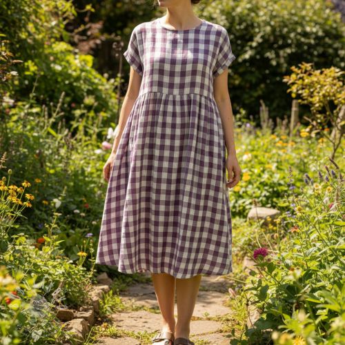 Dupla géz/muszlin Double sided CHECKS MINI grape