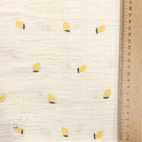 Dupla géz/muszlin EMBROIDERY Fruit natural yellow