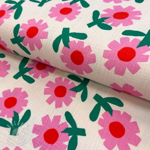 Dupla géz/muszlin Flowers natural/pink by JENNIFER BOURON ORGANIC
