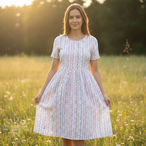 Dupla géz/muszlin Leaves in stripes digital print ORGANIC