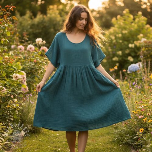 Dupla géz/muszlin petrol