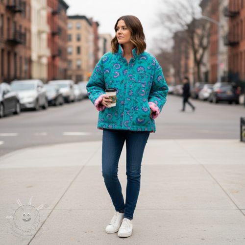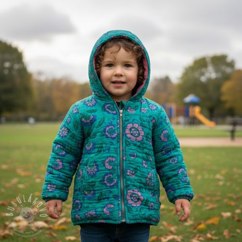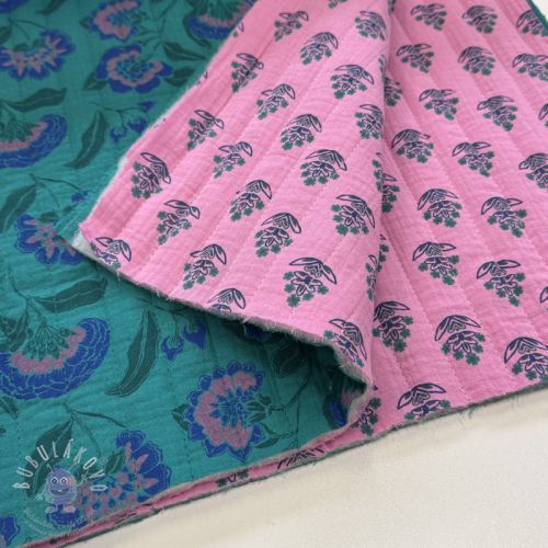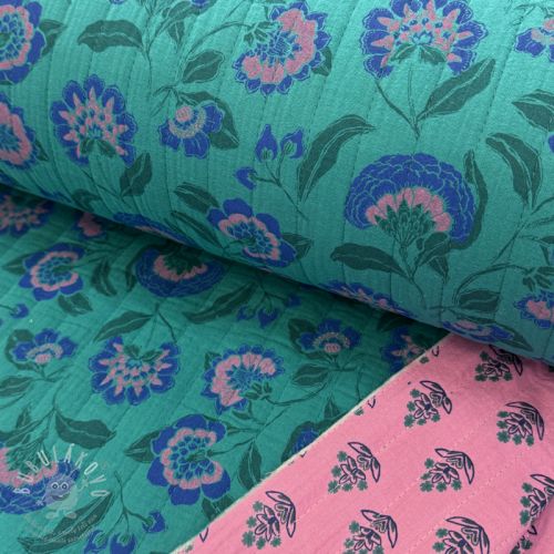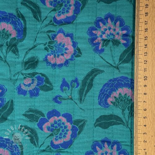 Dupla géz/muszlin STEPPED Flowers petrol
