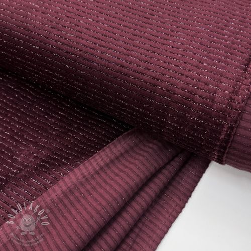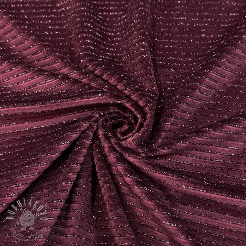 Elasztikus bársony anyag VELVET LUREX Stripe bordeaux