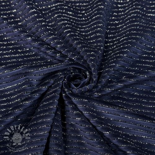 Elasztikus bársony anyag VELVET LUREX Stripe marine