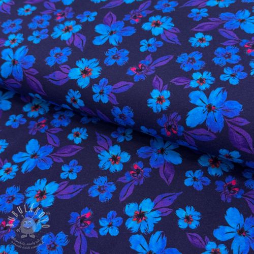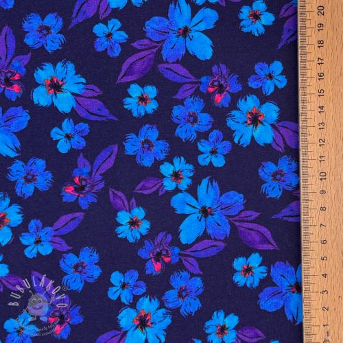 Jersey Hannah flowers blue digital print