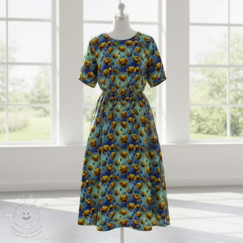 Jersey VISCOSE It's Raining Poppy's blue digital print