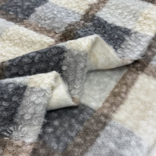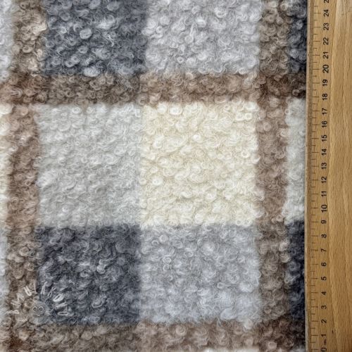 Kabát anyag TEDDY EMBROIDERY Flowers pebble