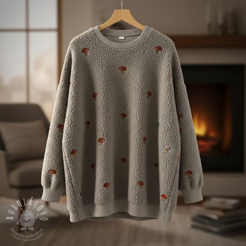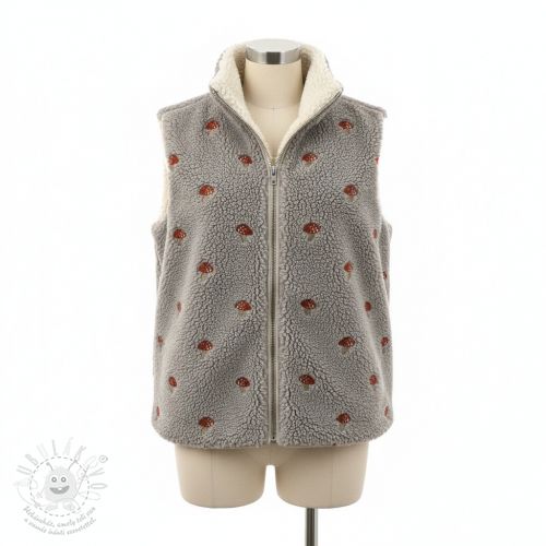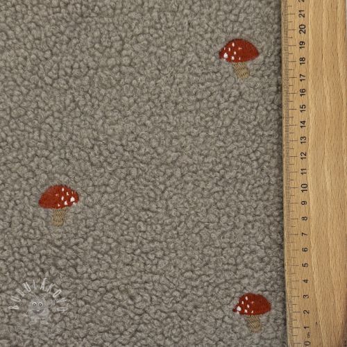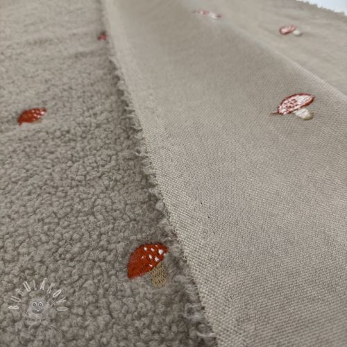 Kabát anyag EMBROIDERY Little mushrooms pebble