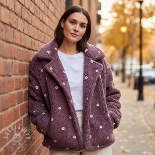Kabát anyag TEDDY EMBROIDERY Mini rosewood