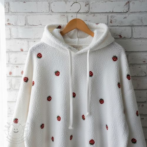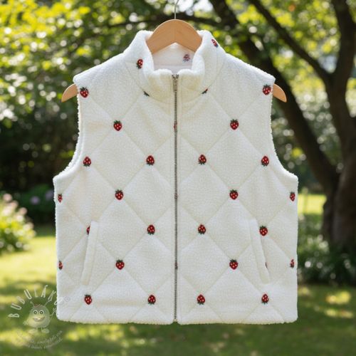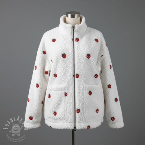 Kabát anyag TEDDY EMBROIDERY Strawberries white