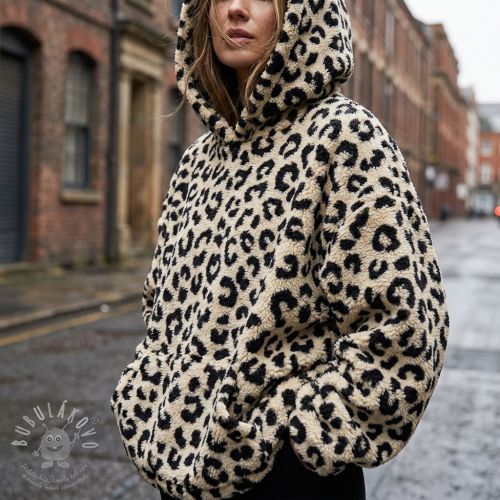 Kabát anyag TEDDY JACQUARD Animal skin black