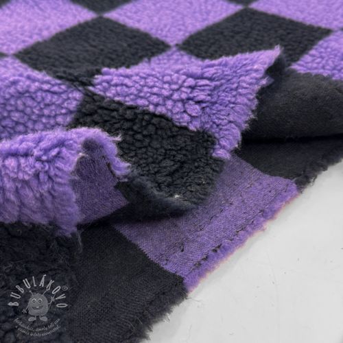 Kabát anyag TEDDY JACQUARD Checks purple