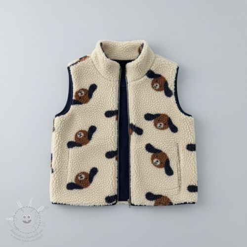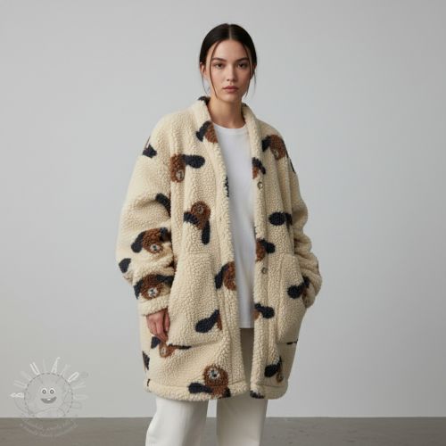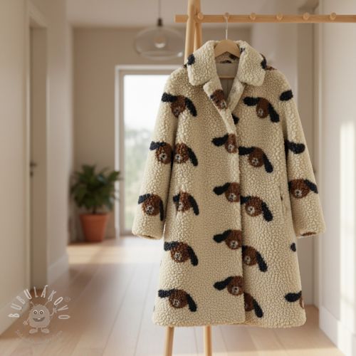 Kabát anyag TEDDY JACQUARD Dogs brown