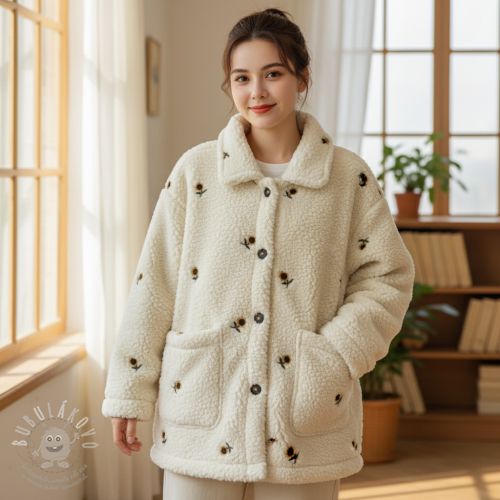 Kabát anyag TEDDY JACQUARD EMBROIDERY Sunflower