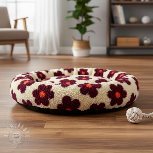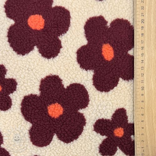 Kabát anyag TEDDY JACQUARD Flowers beige