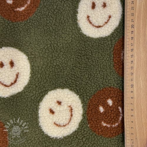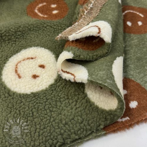Kabát anyag TEDDY JACQUARD Happy faces green