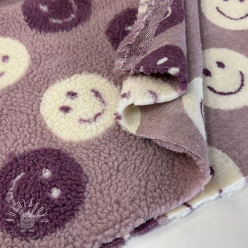 Kabát anyag TEDDY JACQUARD Happy faces mauve