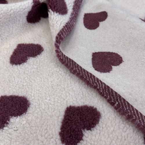 Kabát anyag TEDDY JACQUARD Hearts rouge