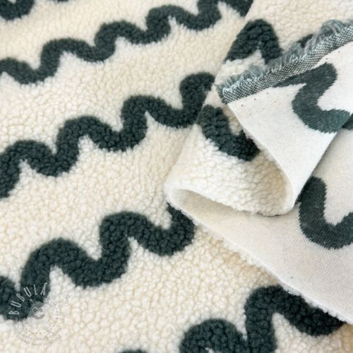 Kabát anyag TEDDY JACQUARD Waves army green