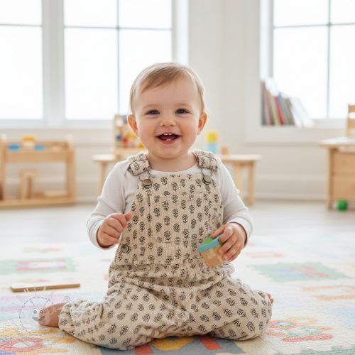 Kordbársony STRETCH Little dino light sand
