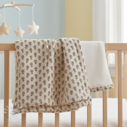 Kordbársony STRETCH Little flower light sand
