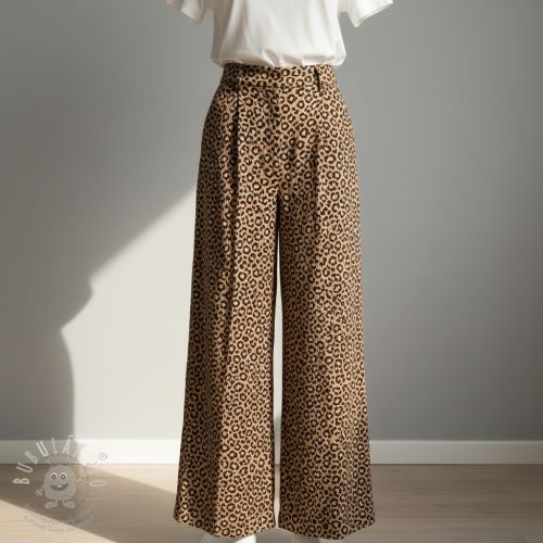 Kordbársony STRETCH Little Leopard sand