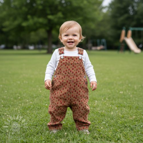 Kordbársony STRETCH Little strawberries taupe