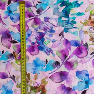 Lenvászon pamuttal Aquarel leaves RAMIE purple digital print