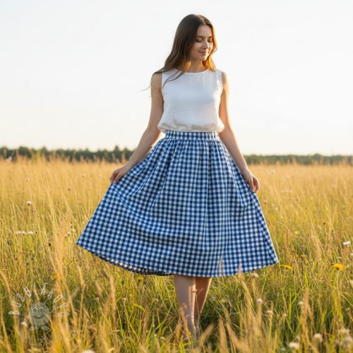 Pamutvászon Check sky