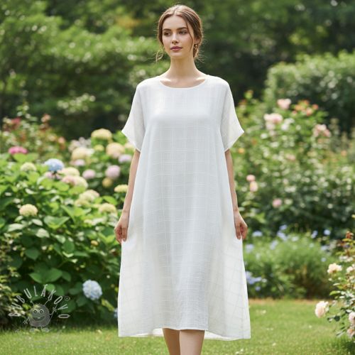 Pamutvászon EMBROIDERY DOBBY Square white