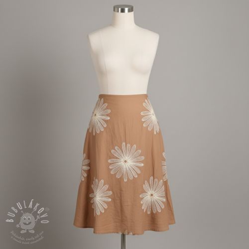 Pamutvászon EMBROIDERY Flowie cinnamon