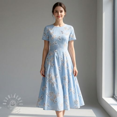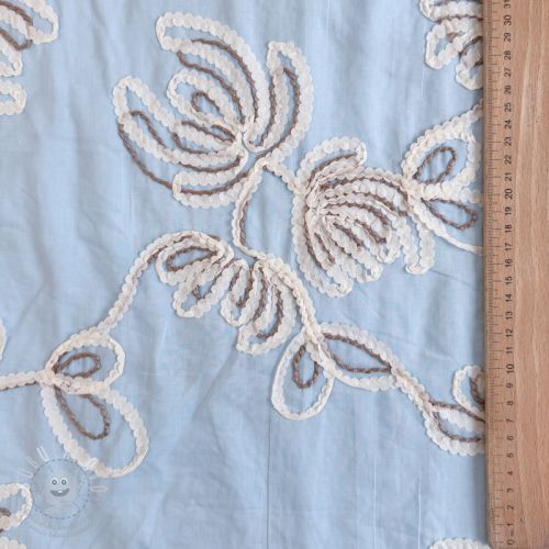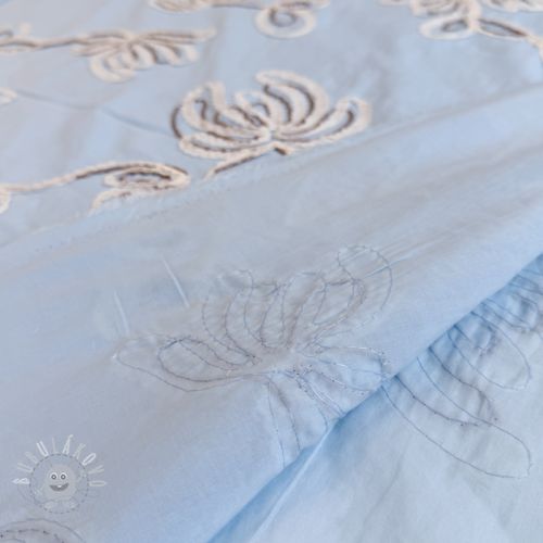 Pamutvászon EMBROIDERY Loom En Light baby blue