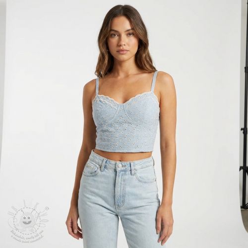 Pamutvászon EMBROIDERY Rosemary light blue