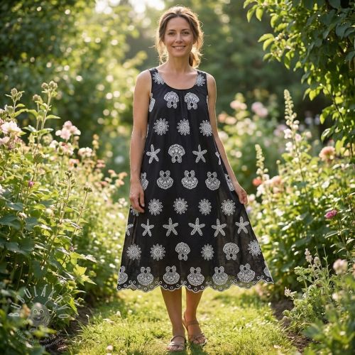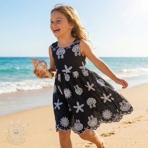 Pamutvászon EMBROIDERY Sea ornaments black