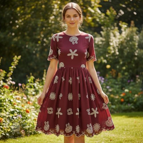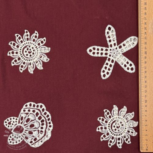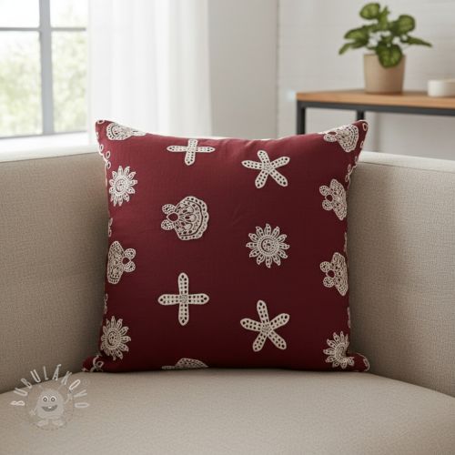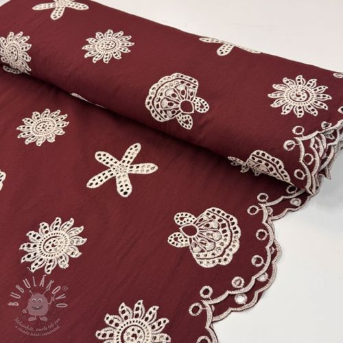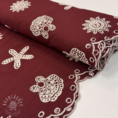 Pamutvászon EMBROIDERY Sea ornaments bordeaux