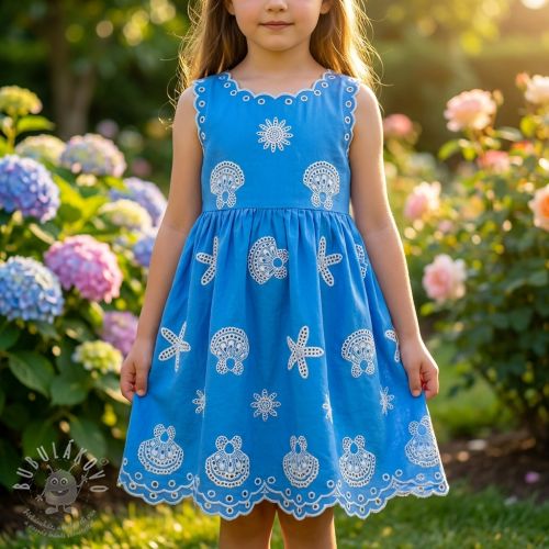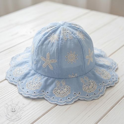 Pamutvászon EMBROIDERY Sea ornaments light blue