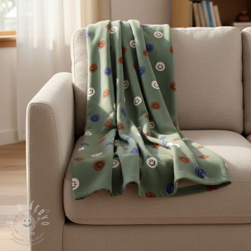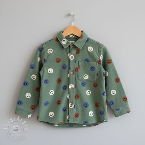 Pamutvászon FLANNEL Happy faces army green