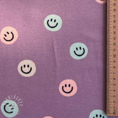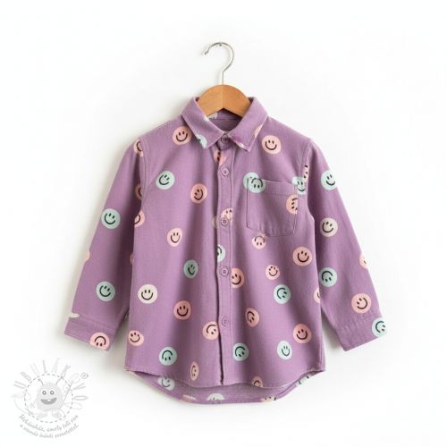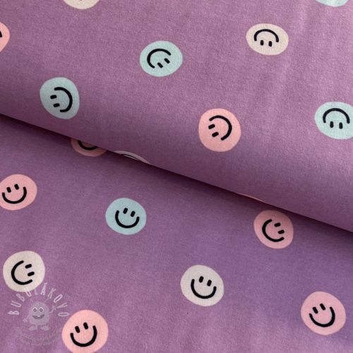 Pamutvászon FLANNEL Happy faces lavender