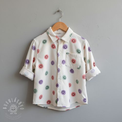 Pamutvászon FLANNEL Happy faces off white lilac