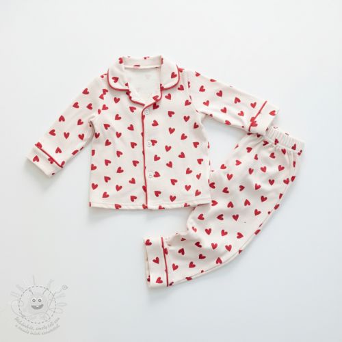 Pamutvászon FLANNEL Hearts off white