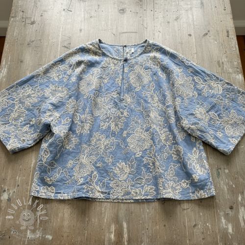 Pamutvászon JEANS EMBROIDERY Bouquet light blue