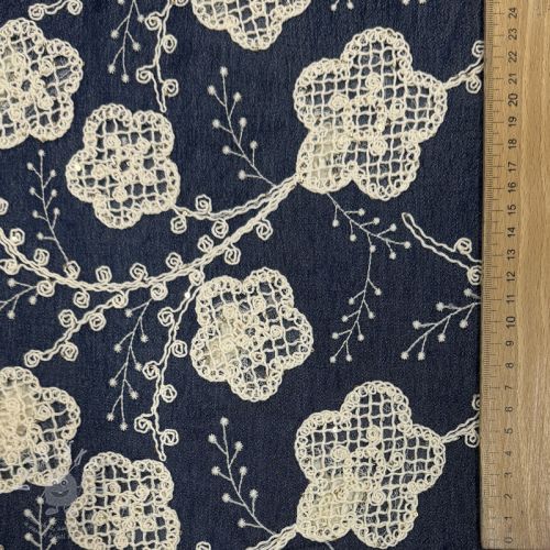 Pamutvászon JEANS EMBROIDERY Flora design F