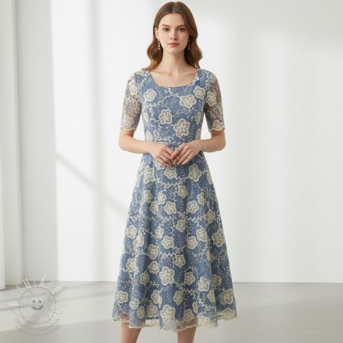 Pamutvászon JEANS EMBROIDERY Flora design D
