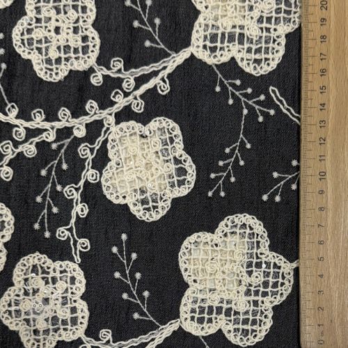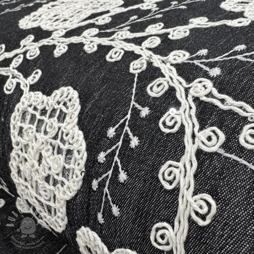 Pamutvászon JEANS EMBROIDERY Flora design D