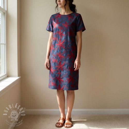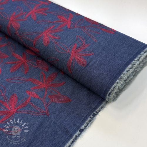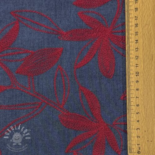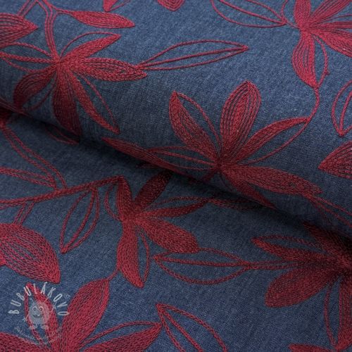 Pamutvászon JEANS Embroidery Flowers burgundy