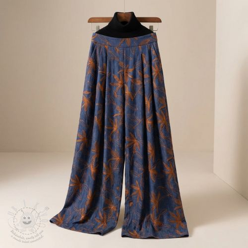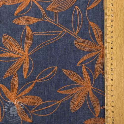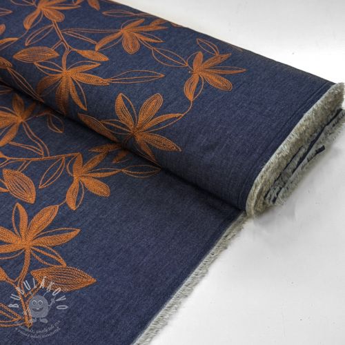 Pamutvászon JEANS Embroidery Flowers camel