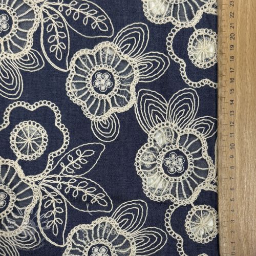Pamutvászon JEANS EMBROIDERY Niva design D