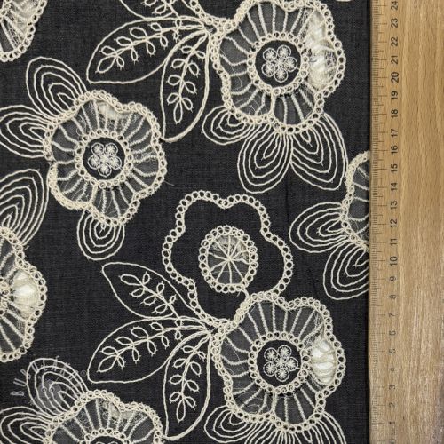 Pamutvászon JEANS EMBROIDERY Niva design D
