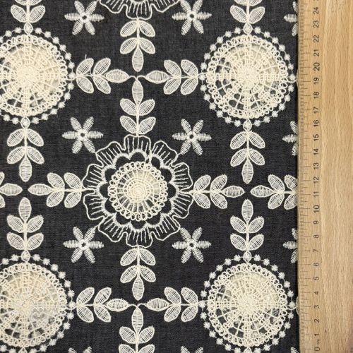 Pamutvászon JEANS EMBROIDERY Niva design A