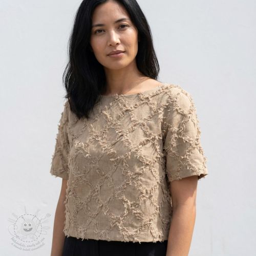 Pamutvászon lenvászonnal Vintage Fringe Diamonds naturals
